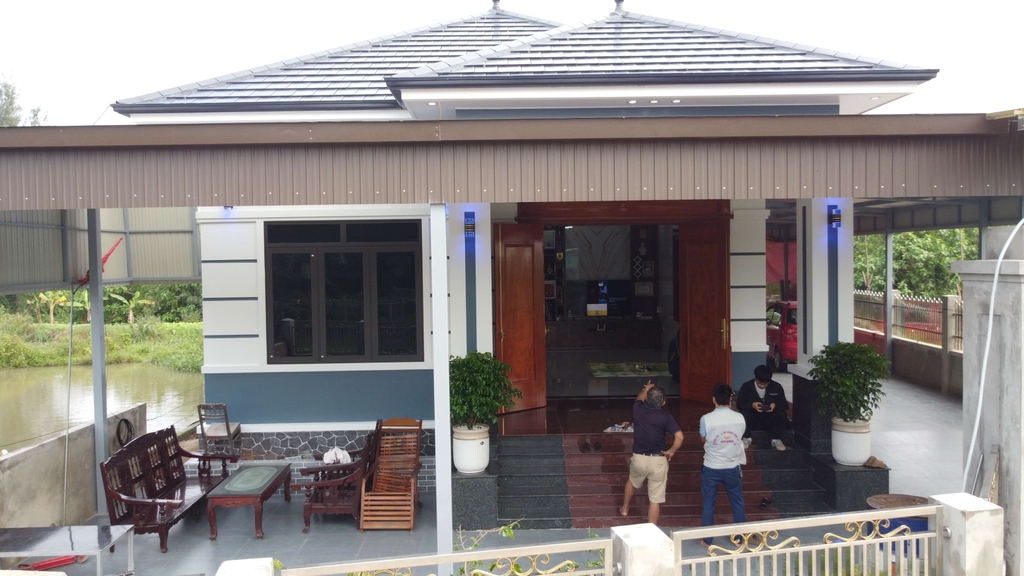 Do thời tiết ở miền trung rất khác nghiệt nên chủ nhà đã phải dùng hệ thống giàn tôn bao quanh để che mưa, che nắng.